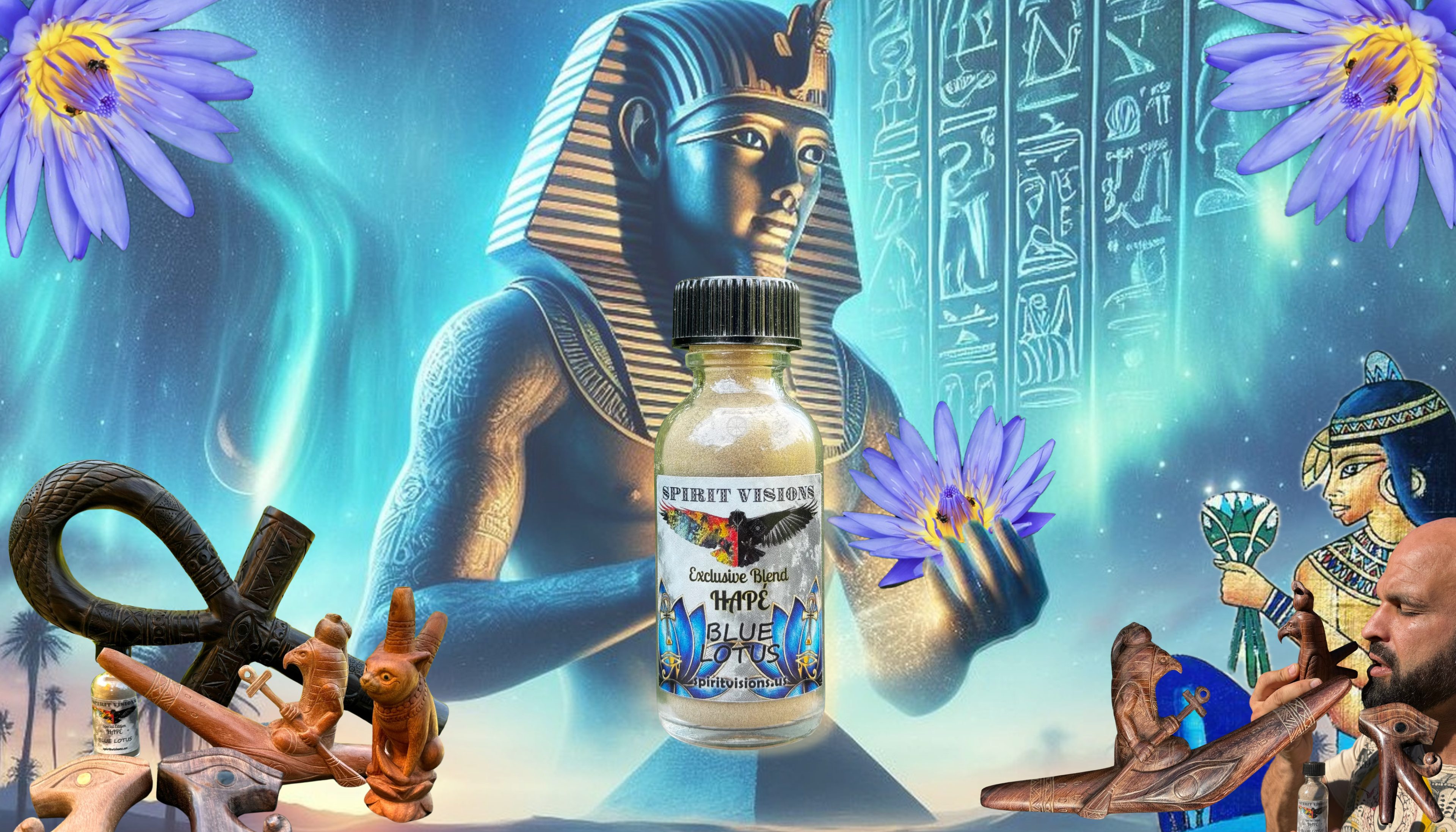 Soothe your mind, calm your spirit, and drift into lucid dreams with the worlds only Blue Lotus Hapé — a premium blend uniting the sacred medicines of the Nile and the Amazon: for peace, clarity, relaxation, and increased psychic abilities.