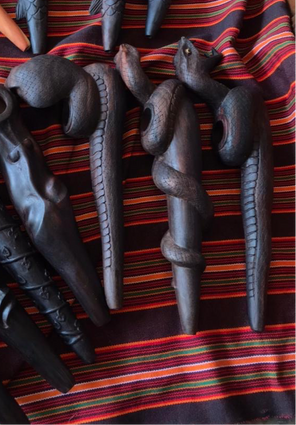 This beautiful piece is made of dense and durable ebony wood. Hand-carved from a single block of wood by an indigenous artists.